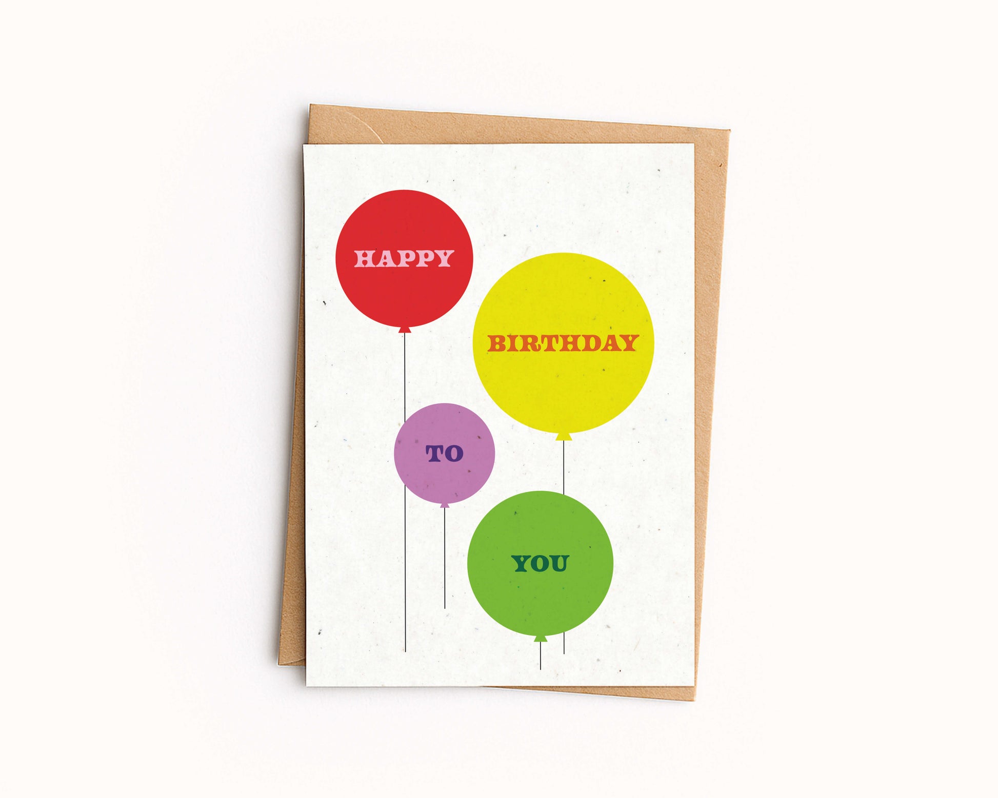The Happy Birthday Balloon card is printed on thick, oat-flecked recycled card stock and comes with a recycled kraft envelope.